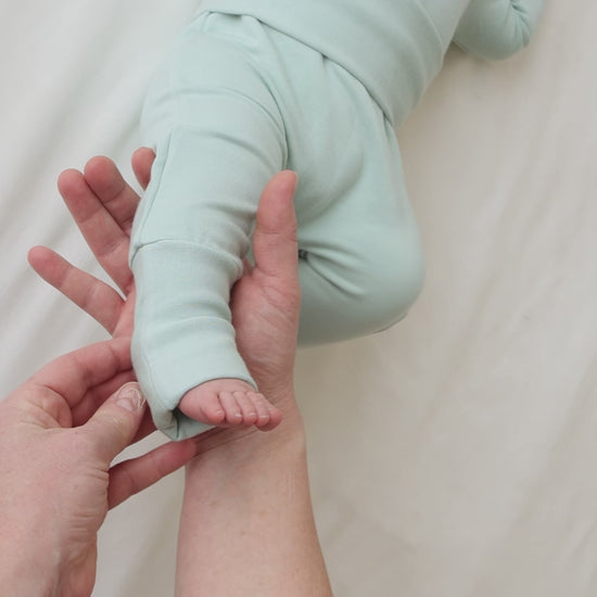 ADD TO BABYLISTCrafted from our premium bamboo–cotton blend. A cozy, versatile bottom that grows with your baby. The fold-over foot cuffs let you switch between open feet or full coverage, and the wide fold-over waistband offers a soft, snug fit that’s gentle on delicate tummies.