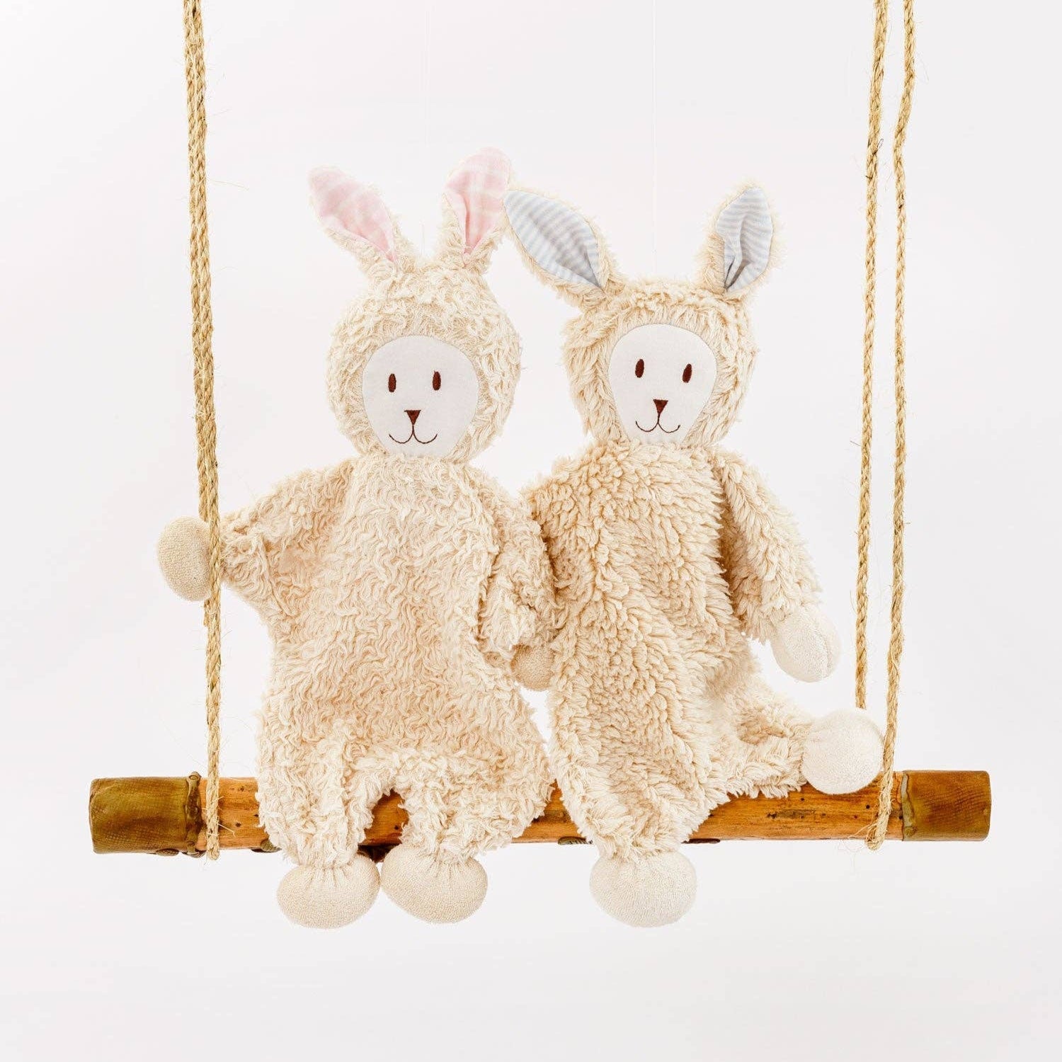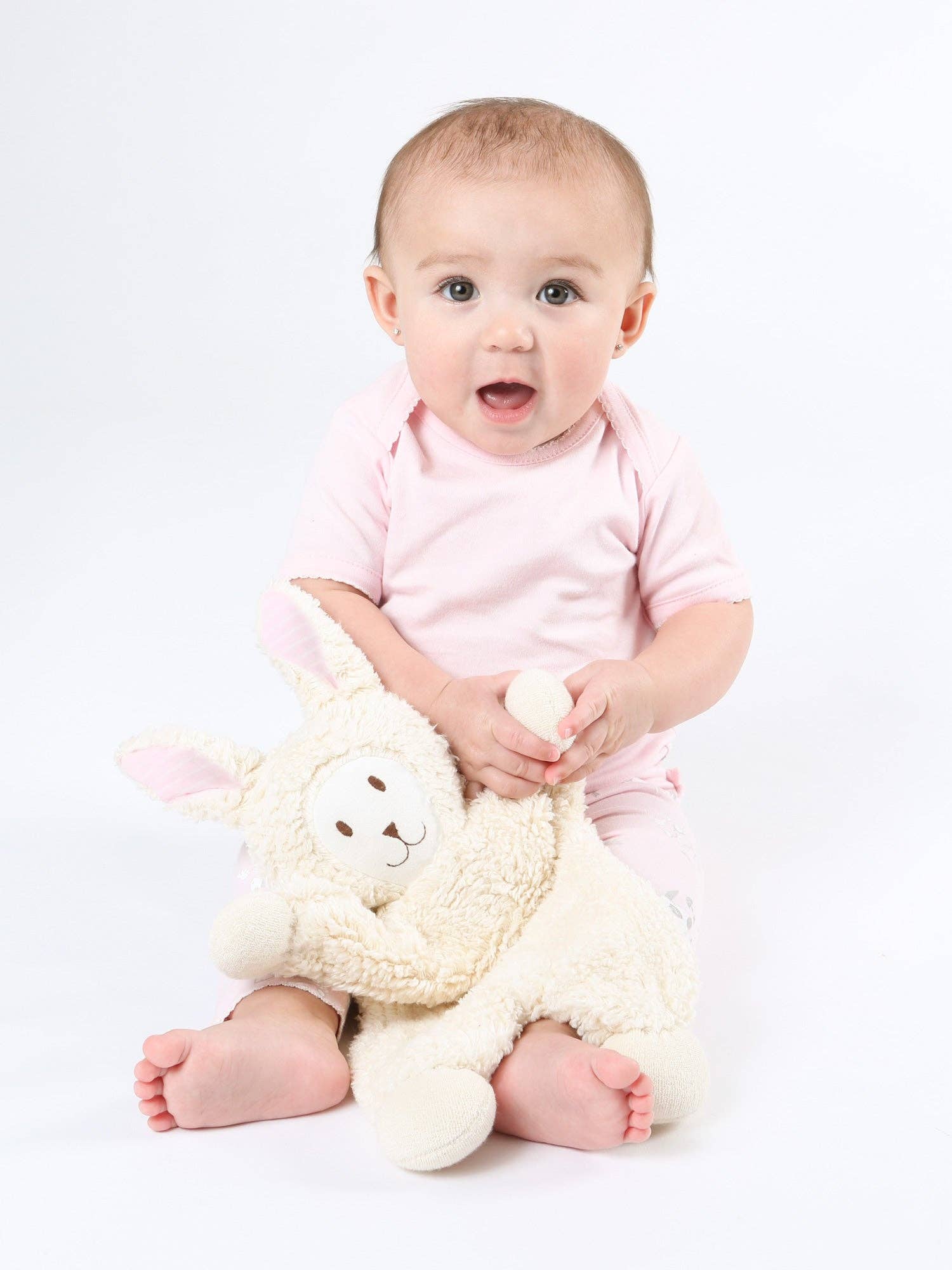 Made for cuddling, our faux fur sherpa Snuggle Bunny Stuffed Animal is the perfect friend for your toddler, featuring a "flat" body that is floppy, fun and easy for little hands to hold. Lovingly made and stuffed with 100% certified organic Egyptian Cotton, our environmentally-friendly plush toy rabbits are pure from the inside out.